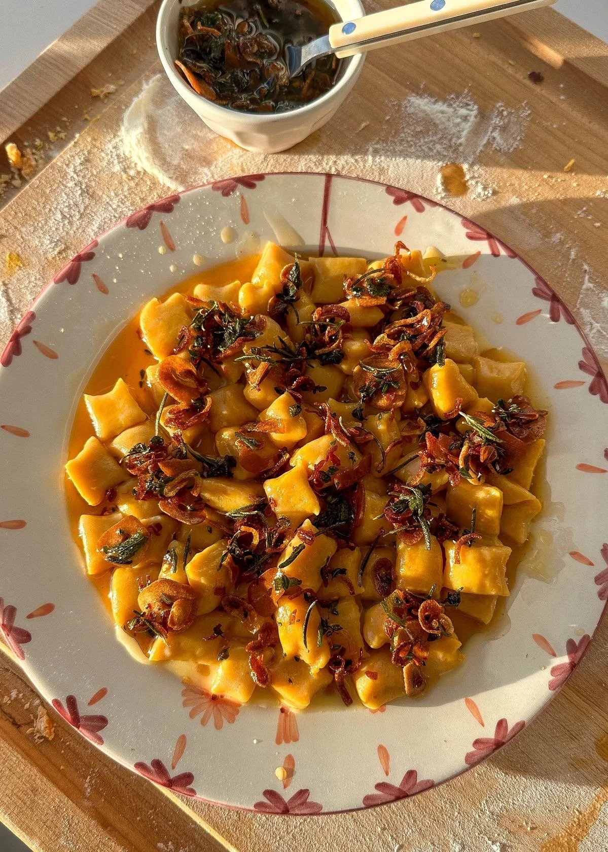 Main: butternut squash gnocchi, cumin roasted sweet potato, truffle, parmesan crisp, crispy kale