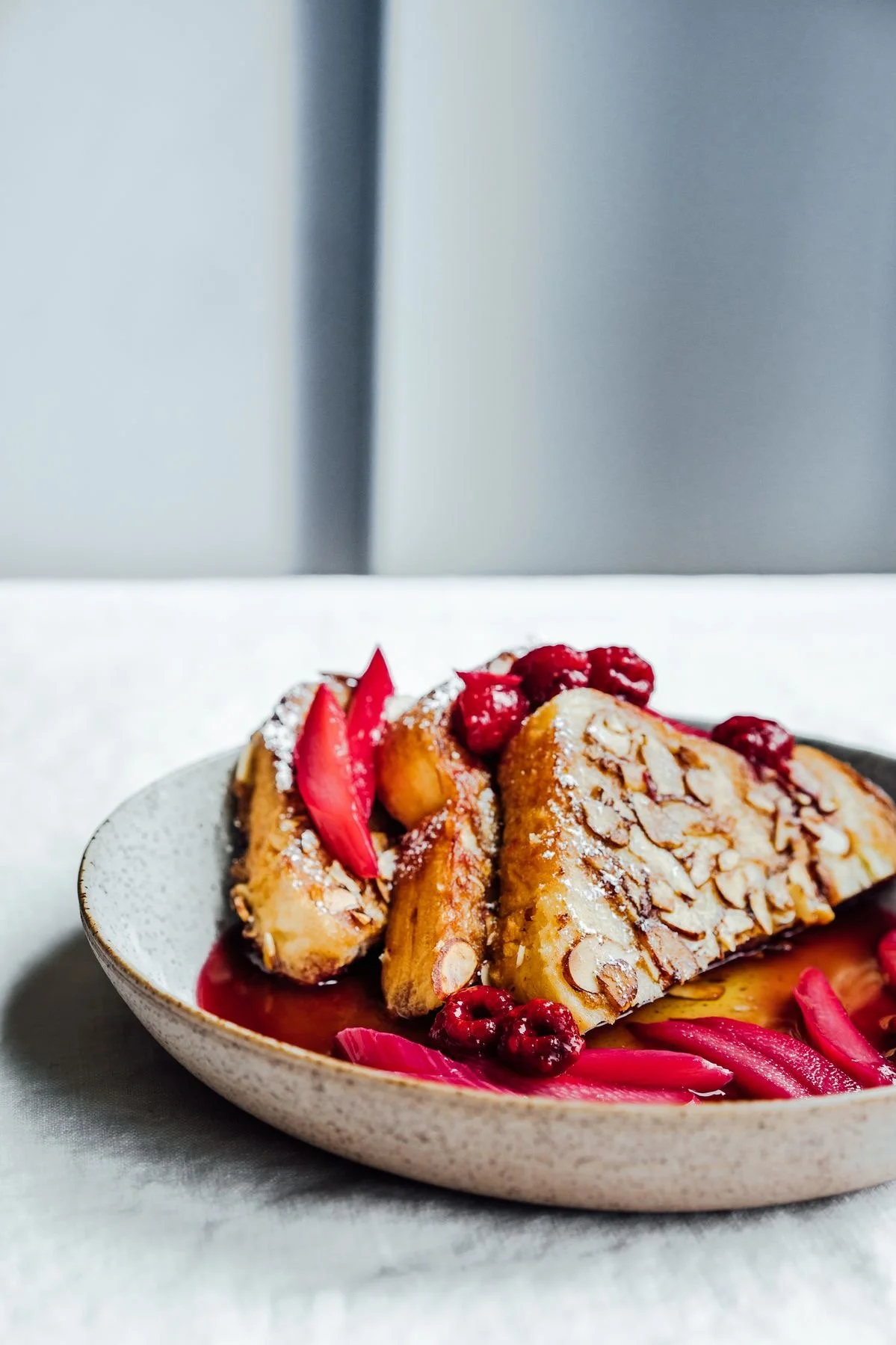 american pancakes cherry and wild berry syrup, lemon crème fraîche